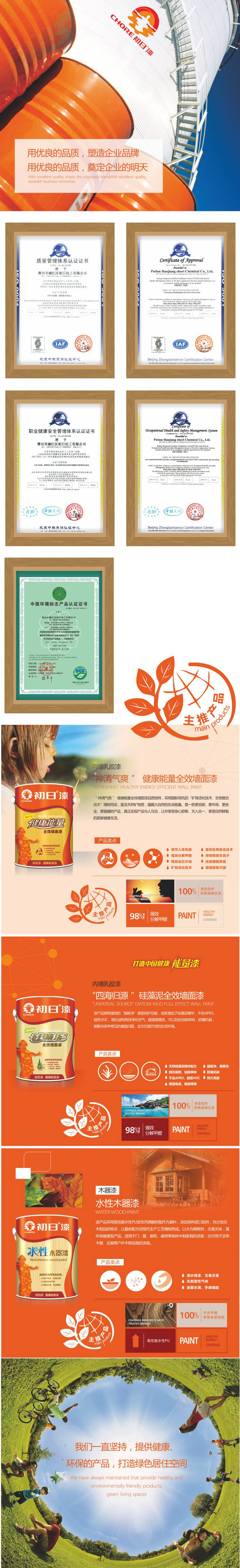 初日漆荣获中国环境标志产品认证、中国环保产品认证、出口涂料备案书、质量管理体系认证、中国国家强制性产品认证,初日漆绿色环保,保证质量,独家代理,全程扶持,万元代理,零加盟,零风险,创业首选品牌涂料。