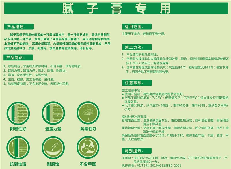 2、遮盖力强,附着力好,耐水、防霉、耐腐蚀。