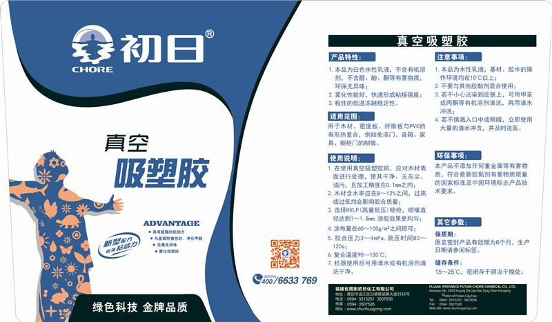 使用说明:1.在使用真空吸塑胶前,应对木材表面进行处理,使其干净、无灰尘、油污,且加工精度在0.1mm之内;