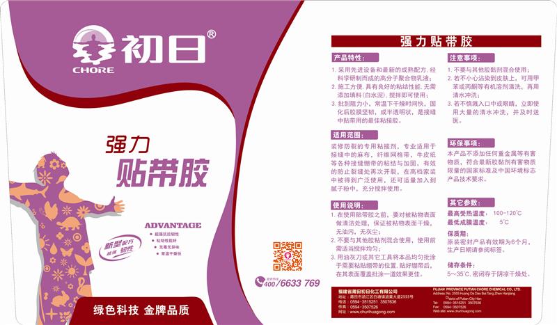 产品特性:1.超强抗拉韧性2.粘结性能好 3.无毒无异味 4.常温干燥快