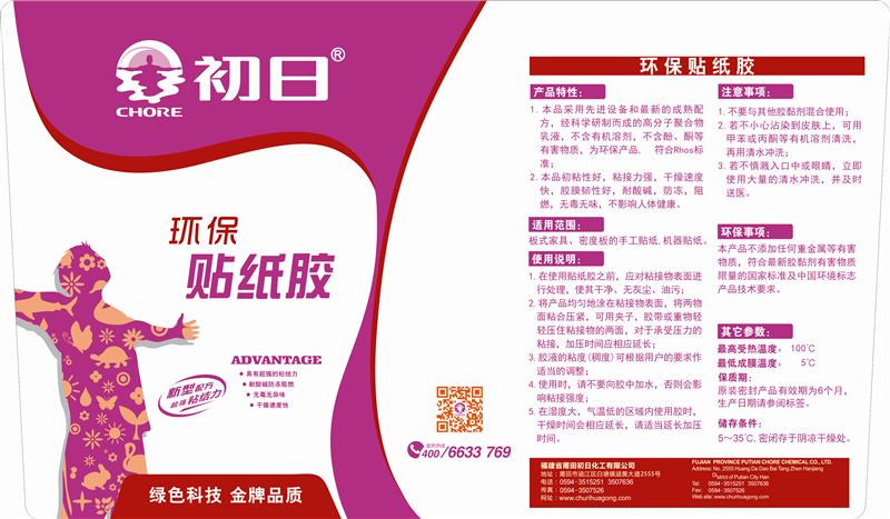 采用先进设备和最新的成熟配方,经科学研制而成的高分子聚合物乳液,初粘性好,粘接力强,干燥速度快,胶膜韧性好,耐酸碱,防冻,阻燃,无毒无味,适用于板式家具、密度板的手工贴纸,机器贴纸。