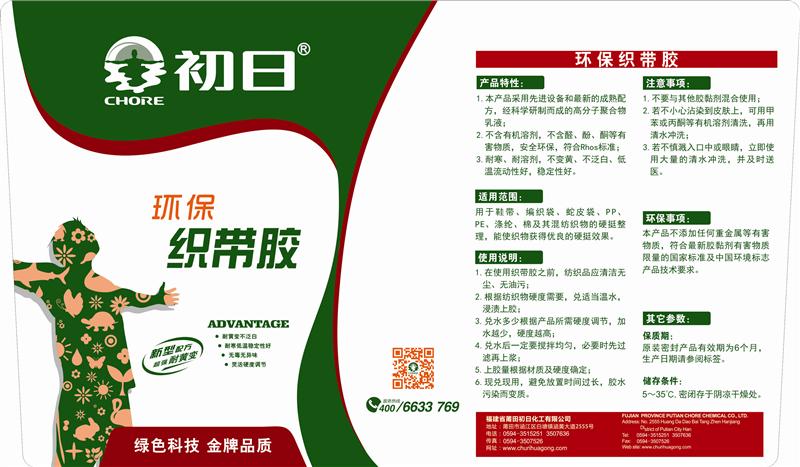 环保事项:本产品不添加任何重金属等有害物质,符合最新胶黏剂有害物质限量的国家标准及中国环境标志产品技术要求。